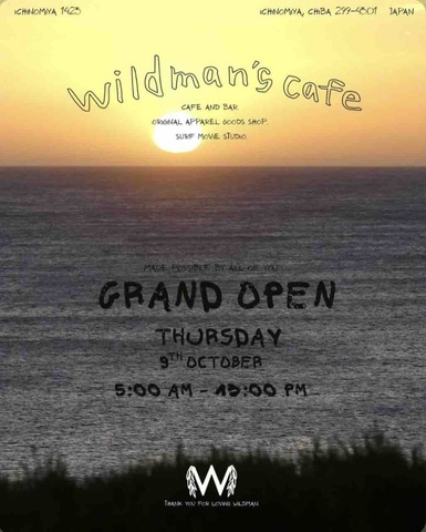 EVINSURFのライダー安藤竜太が新しくカフェをオープンします。場所は千葉県一宮市。GRAND OPENは10月9日。店舗名は『wildman’s cafe』千葉県にサーフ···