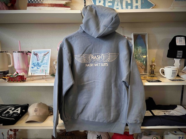 RASH定番の羽バックフルジップパーカー。羽バック+左胸ロゴプリントのシンプルなデザイン。12オンスの上質感あるヘビーウェイトボディに、裏起毛でし···